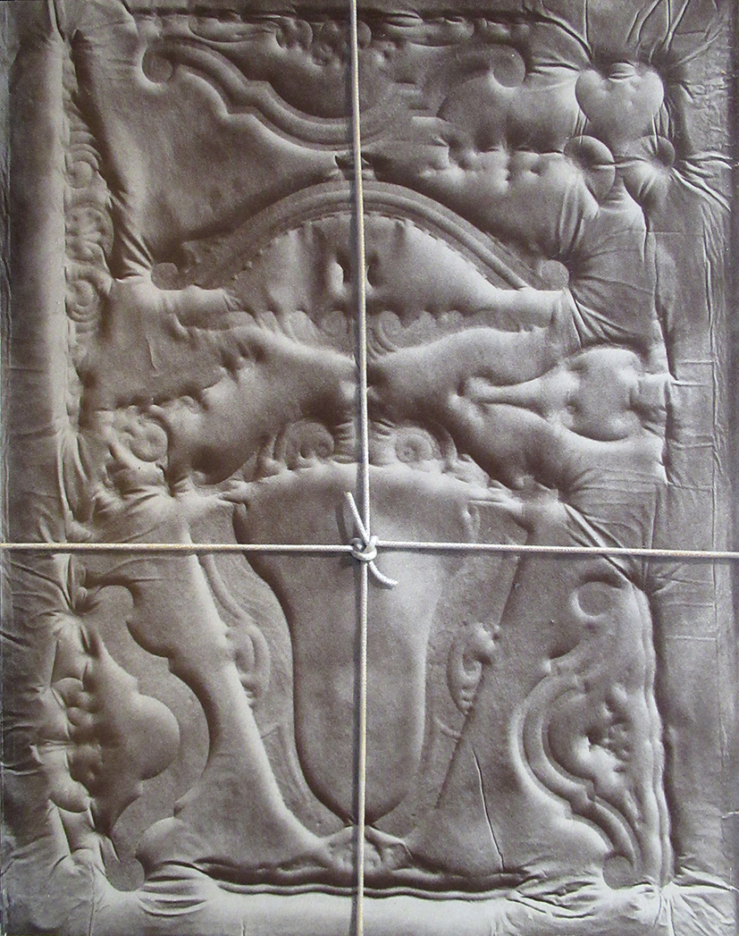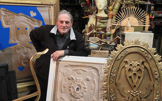 En aquesta ocasió aplega indicis, retalls, materials, formes, trossos, fragments de coses que semblen haver perdut tota la seva significació primigènia, i converteix el seu taller en un laboratori on cada porció, cada peça, cada residu, entra en joc amb els altres. Llavors comencen a emergir possibilitats, combinacions, espurnes, projeccions d’aures que es barregen, trencaclosques sense cap ordre ni solució, fractals desplegant-se en un aparent caos, collages mutants, empremtes, petjades, transicions, suggeriments, insinuacions. De vegades en surt un fons de quadre acolorit que esperarà anys al celler, fins a trobar el punt de fermentació i el complement que li doni sentit. De vegades unes potes de llit o d’armari es conjuguen amb un penjador o un bocí de filigrana decorativa per suggerir un baix relleu, l’esquelet d’un retrat. Amb la maduració adequada tot trobarà el seu ritme, el seu codi, el cràter que el farà emergir.